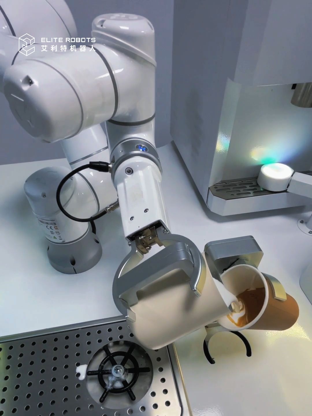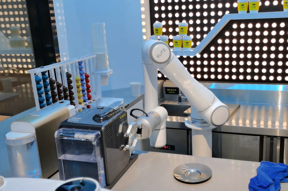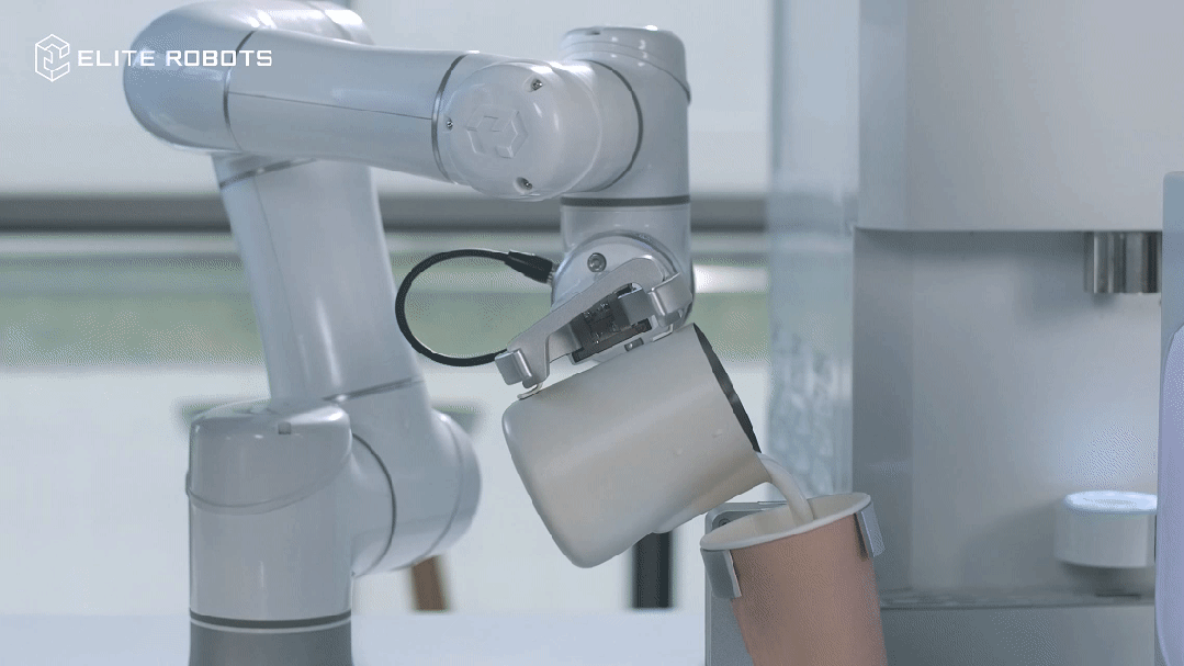 机器人采用了先进的运动控制算法,支持拖拽示教,重复定位精度达±0.02mm,可精准执行接杯、放杯、抬臂、夹取、拉花、回转、清洗等高级技术工序。保证操作过程的流畅性和准确性,完美复现专业咖啡大师的每一个动作和操作细节,100%复刻人工的精湛拉花技艺。