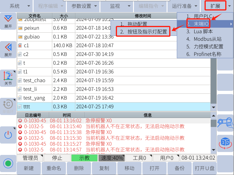 管理员权限下点击运行准备--工艺配置,查看是否勾选了末端IO(默认勾选)