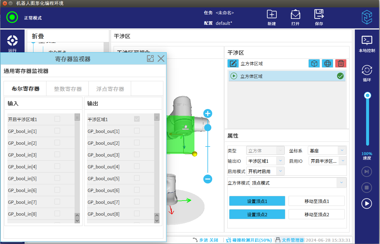 当机械臂检测进入干涉区会自动输出,输出IO内填写的DO信号