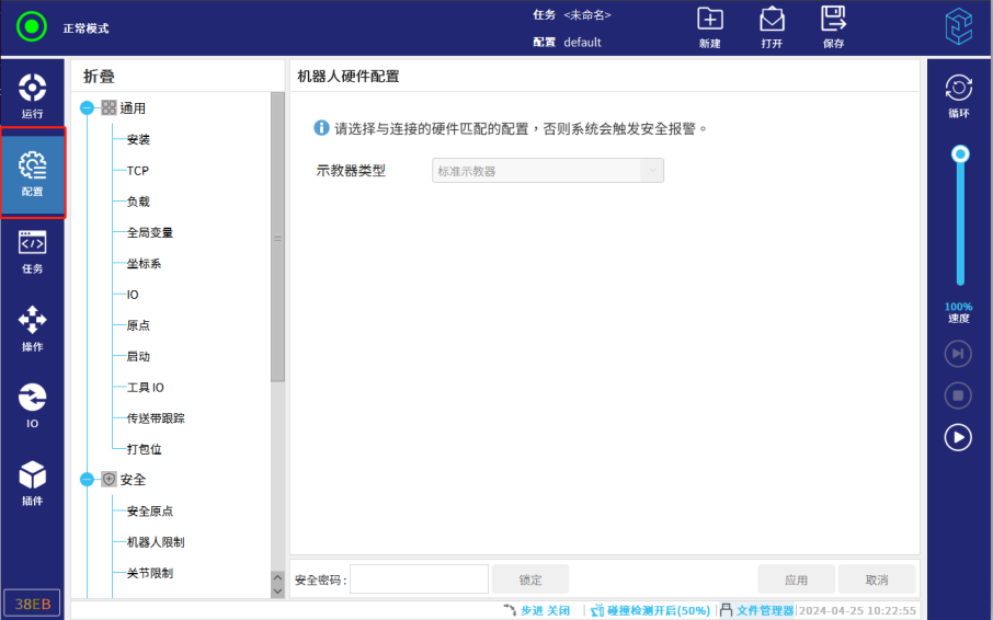 1.是否支持热插拔:不支持,如果不在配置中设置无示教器,直接拔示教器,机器人会报错。