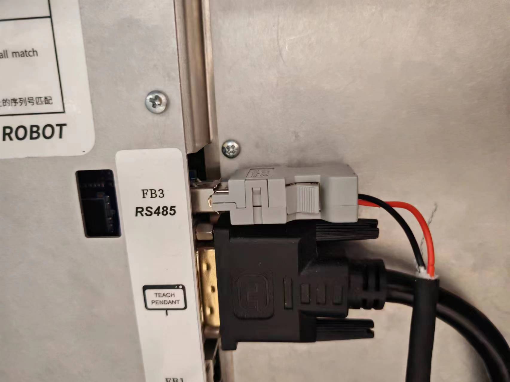 控制箱中设置 RS485 连接器,必须拆卸串口连接器,并将 RS485 线焊接到黑色连接器背面