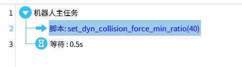 脚本代码“set_dyn_collision_force_min_ratio(25)",括号里的数值代表预设的碰撞灵敏度,范围为:10-100.